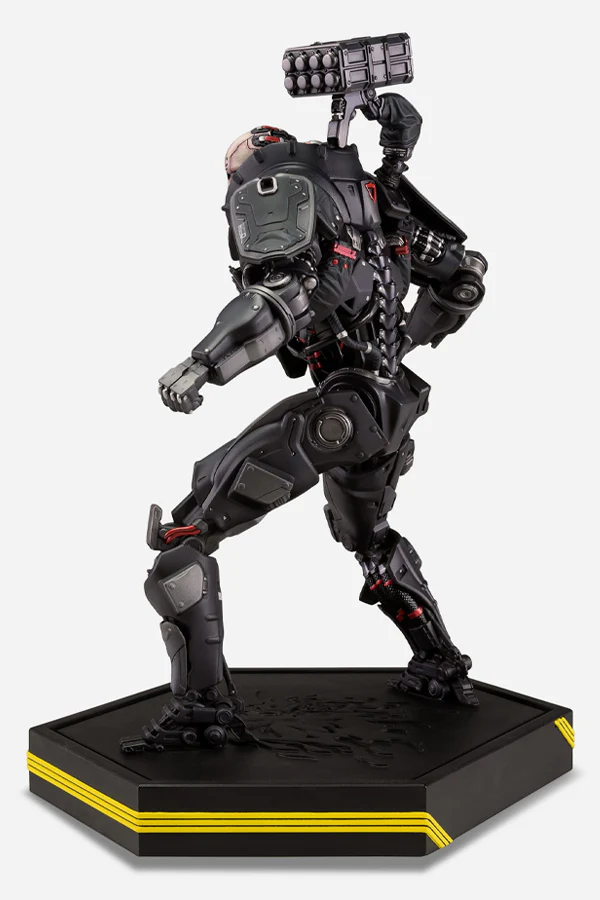 His towering presence and cybernetic prowess make him an indomitable force in Night City, and this 12-inch statue captures his fearsome and awe-inspiring full-chrome body in preem detail. Primed for action, he stands with his shoulder-mounted mortar launcher at the ready, with his merciless, skull-like face focused solely on his target.