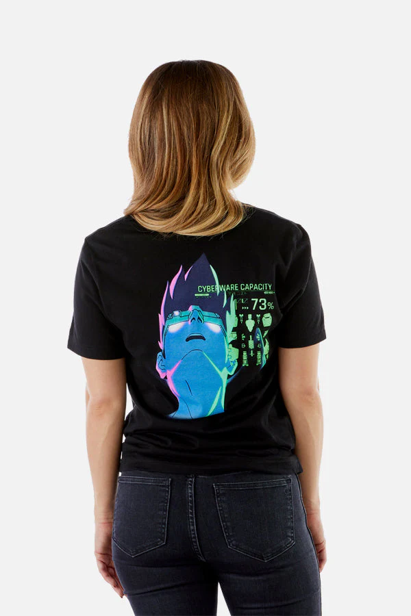Inspired by the award-winning Cyberpunk: Edgerunners anime series created in partnership with the legendary Studio Trigger, this tee features the iconic Edgerunners symbol on the front, along with a vibrant portrait of protagonist David Martinez on the back. The design is full of neon colors and showcases David's obsession with chrome and the cyberpunk way of life.Â